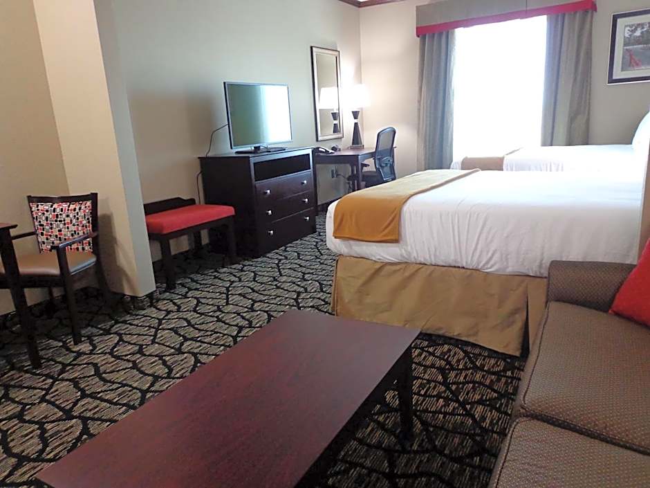 A seating area with a sofa bed and a flat-screen TV is featured in this suite. A refrigerator, a microwave, and coffee service are included.