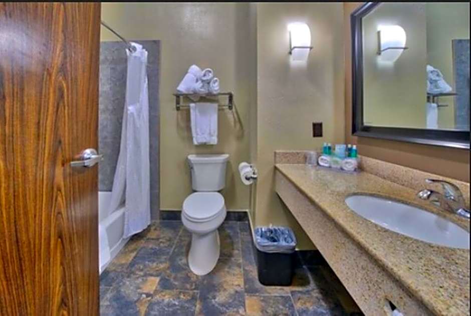 Visual alerts and alarms as well as a TV with closed captioning are offered in this hearing disability accessible room.